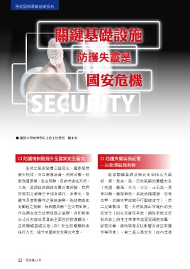 並將關鍵基礎設施(CI)安全防護機制與 駭客攻擊、資訊戰等足以影響系統正常運