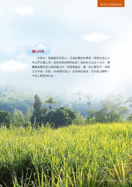 餐桌上的臺灣風景 豐山村落 如果說,嘉義縣的阿里山,是濃妝豔抹的貴婦,那麼坐落在大 塔山下的豐山村,就是清新純樸的姑娘!海拔約七百五十公尺,隸 屬嘉義縣阿里山鄉的豐山村,周圍濱臨雲、嘉、投三縣交界,西鄰 古坑草嶺、石壁,東南通阿里山,北接南投溪頭,為阿里山鄉唯一 平地人聚居的村落。 No.14 MAR. 2018. MJIB 45